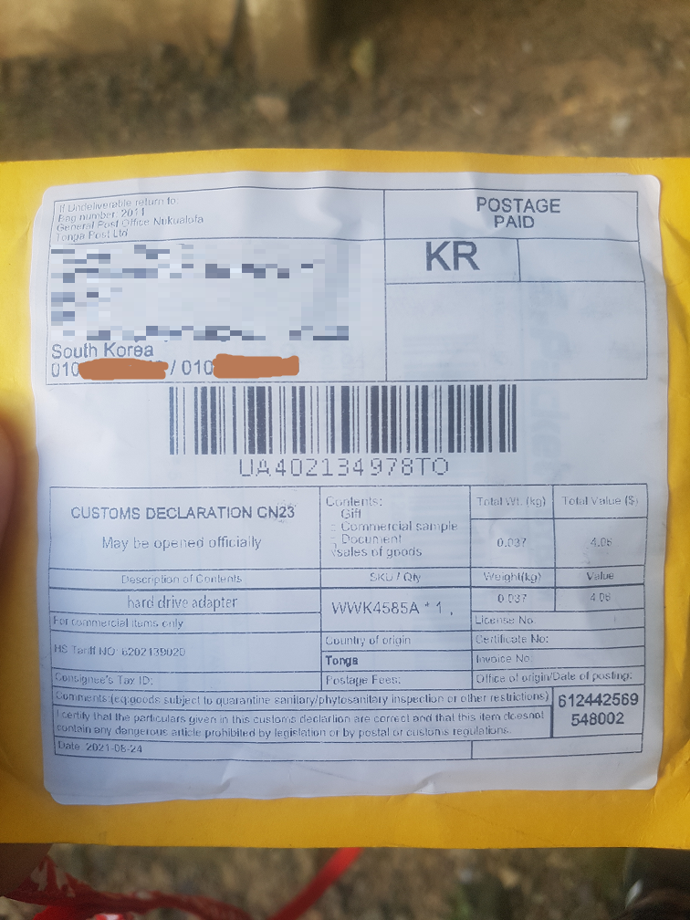 뭐지? 난 이런거 주문한적도 없고 통가에 아는사람도 없다.