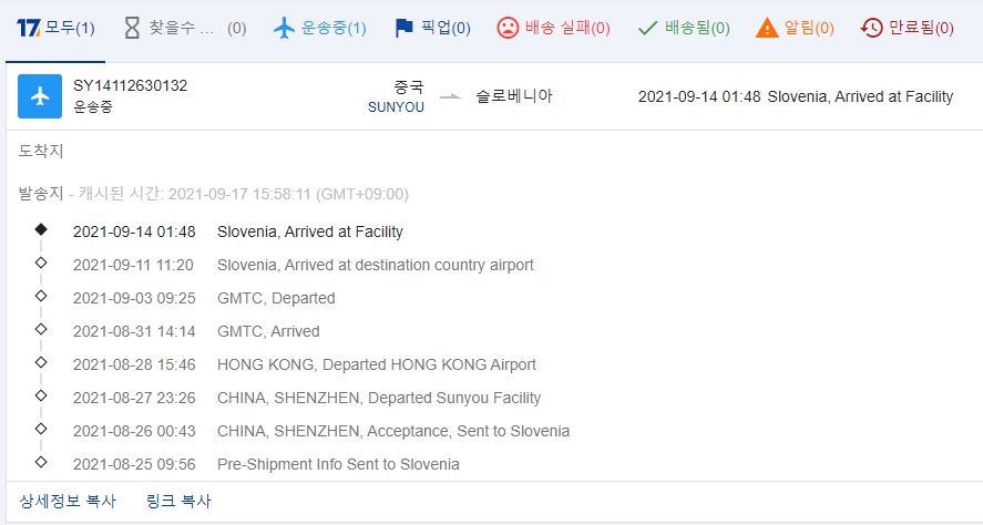 슬로베니아에 있는 저분과 내 소포가 1:1로 바뀐것일까?